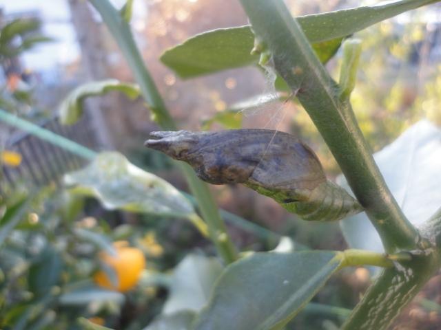 毛虫について 毛虫を好きな人はあまりいないと思いますが、菜園に取っては好き嫌いは別としてもかなり厄介もので、放っておくと、野菜や果物が全滅状態になることもあります。毛虫の種類によって食べる果物や野菜が概ね決まっており、闇雲に何でも食べるわけでは無く、発生の状況も決まっていますので、特性を良く見極めて発生を抑える事が大切です。 宮菜園でよく発生する毛虫類は以下の様な種類です。 アゲハ ご存知アゲハ蝶の幼虫です。放っておくと、大きいのでかなりの被害が出ることがあります。 柑橘類、アシタバ、人参、パセリに発生します。