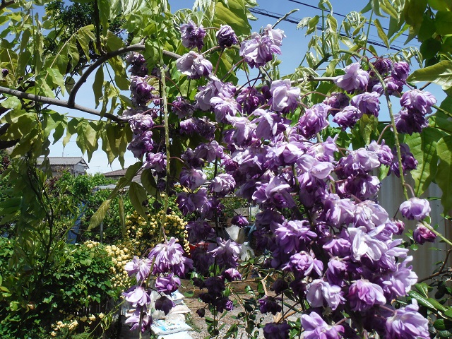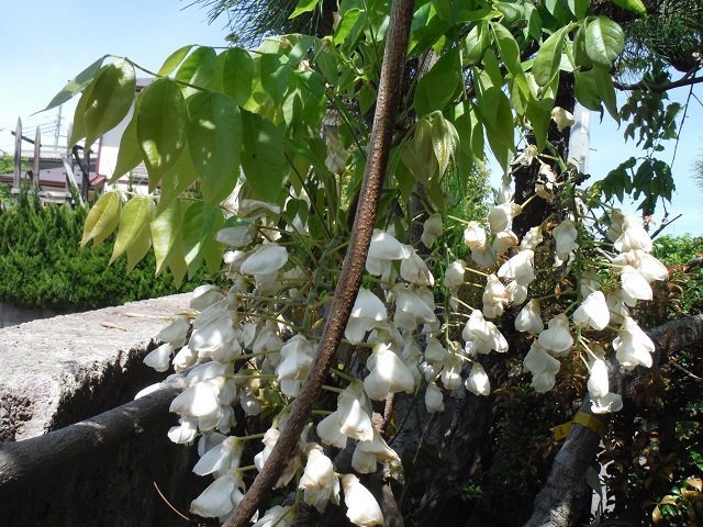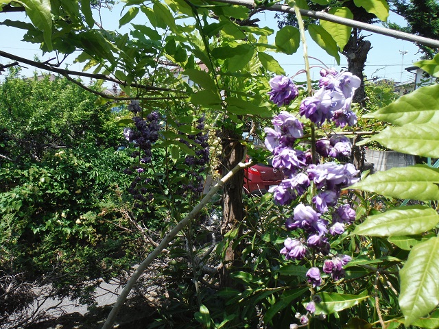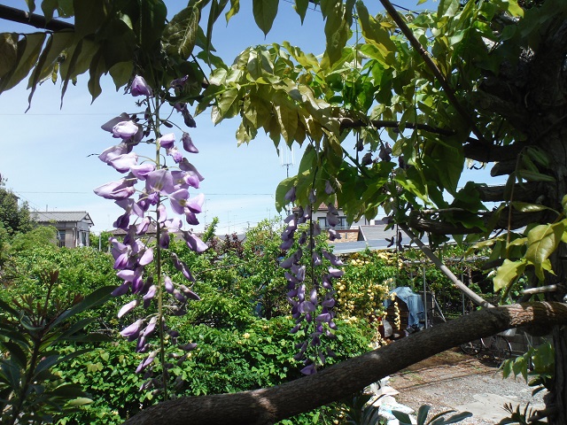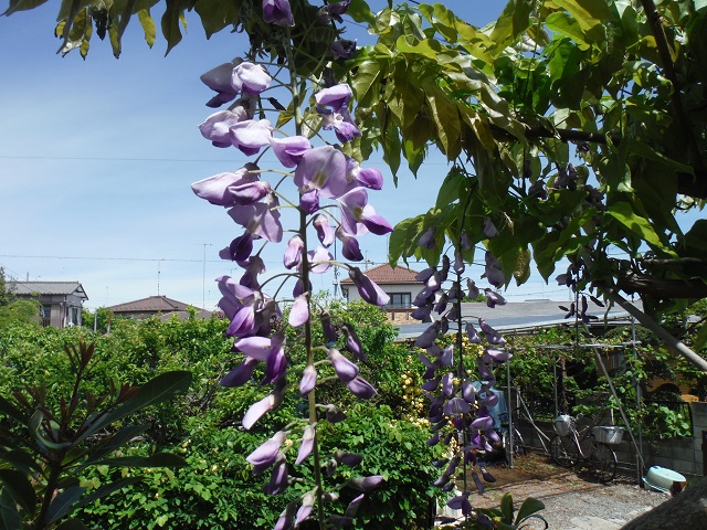 藤について 藤は神社やお寺に植えられているほか、家庭でも時々植えられているのを見ますし、山でも大きな樹にからまり、初夏に鈴なりの見事な花が咲いているのを見かけます。 庭の鉢植え等は別として、大木になるイメージがあり、育てるという事は考えていなかったのですが、神流湖(下久保ダム)に釣りに行った時、足元の水が多いときは水没してしまうあたりに、花を着けた短い枝がありつい育ててみようという気を起してしまいました。 生育状況 小さな苗を植え付け、その後入手出来た品種の接木を行い、それぞれの花の鑑賞を行っています。