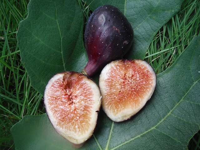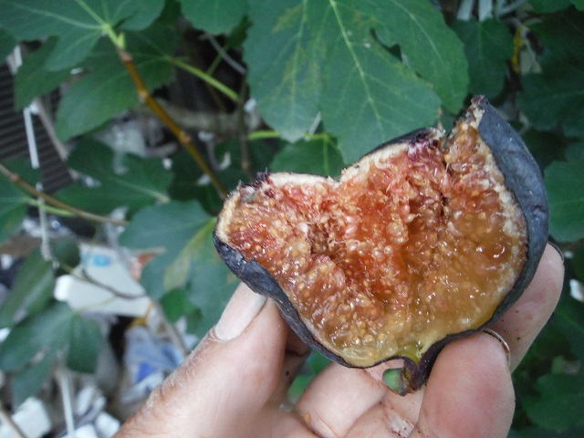 50g〜60g程度、果皮は黒で細長、果肉はピンク〜赤。完熟果は非常に甘い。