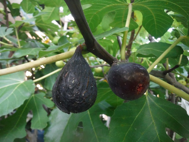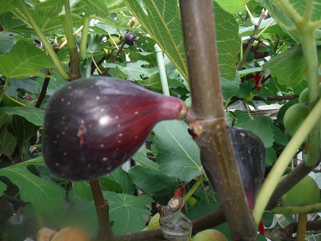 庭ドーフィン台多品種接ぎのアビク(Abicou)実付の様子です。