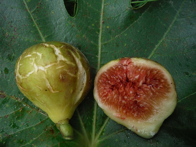 A Sangueについて イタリア産、果皮黄色〜緑、果肉暗赤色、中粒、授粉不用。 FigDatabaseによるとA SangueのシノムニとしてSangue Di Porcoが記載されています。似た様な名称のイチジクにSangue di Dragoという品種があり、その類似品種として、“Sangue di Drago Verde”,“Sangue di Drago 2”,“Sangue di Drago Marrone”“Sangue di Drago Nero”の4種類がある様ですが、A Sangueはこれらいずれとも異なるようです。