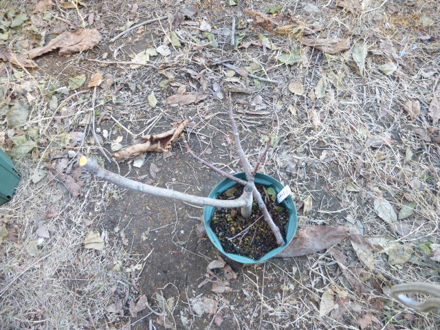 頂いJinAoFen鉢植苗の様子です。根元の剪定枝は挿し木しました。