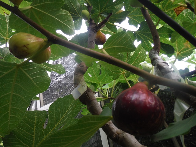 庭多品種接ぎドーフィン台のRosso Demtroの実着きの様子です。