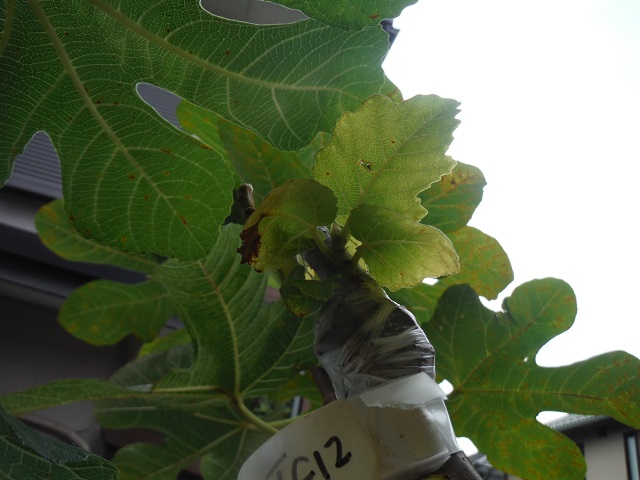 8月1に庭のドーフィン台多品種接ぎの木に接木したSweet Joyの発芽の様子です。