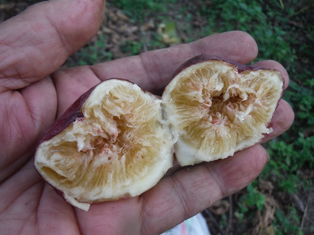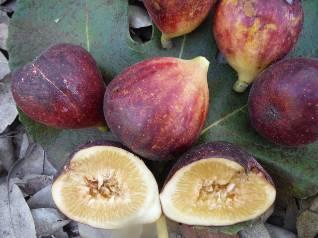 Tuvia Shehoraについて もともとはイスラエル近辺で育った品種をフランスの愛好家がポルケロル諸島に移植して育てた品種。イチジク栽培者の間で人気がある。気候により色が変わる傾向があり、シンガポールでは明るい黄色と赤の表示を収穫、アメリカでは紫の果皮になった、蜂蜜風味の琥珀色の果肉。米国カルフォルニアの例)では濃い紫の小型30g程度の実が一般的の様ですが、日本では色が少しシンガポールの例に近く、多少大きめになるかも知れません。