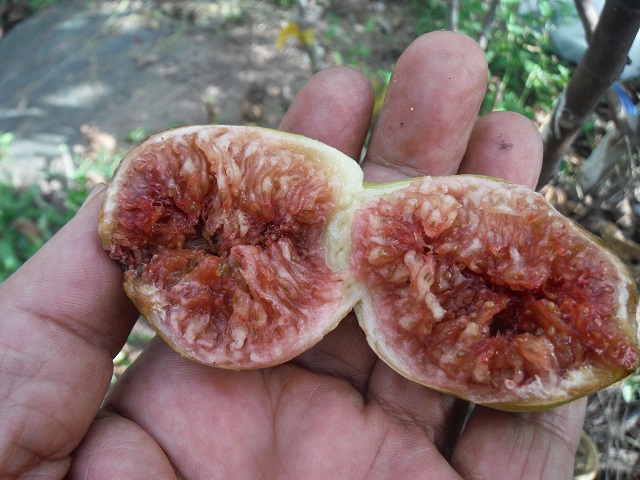 ギリシア原産、果皮緑がかった淡い茶色、果肉赤。