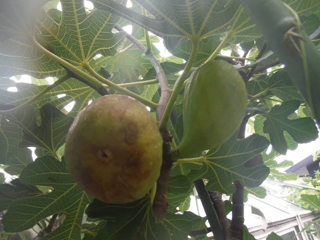 庭ドーフィン台のブルンスウイックの夏果です。一個は過熟でしわしわですが、実は比較的しっかりしています。