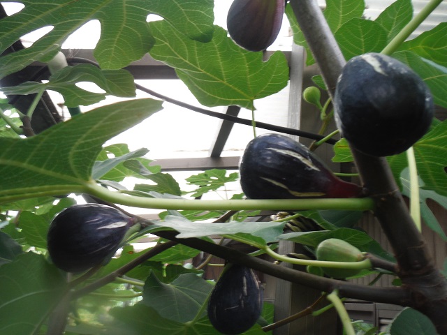 庭のドーフィン台多品種接ぎのカルフォルニアブラック夏果の実着きの状態です。
