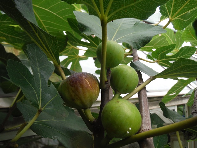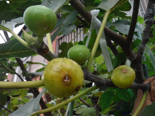 庭の多品種接木台#1ドーフィンに接木した一才イチジクの実着きの様子です。