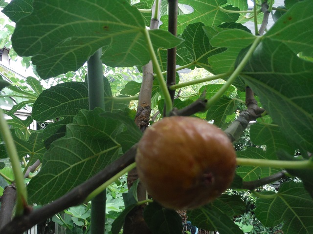 薄い茶色っぽい実を付けます。今年接木した枝に実を着けたので、着果し易い品種と思われます。