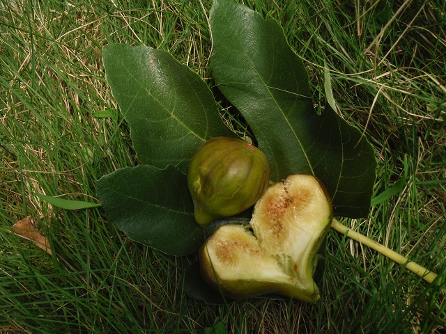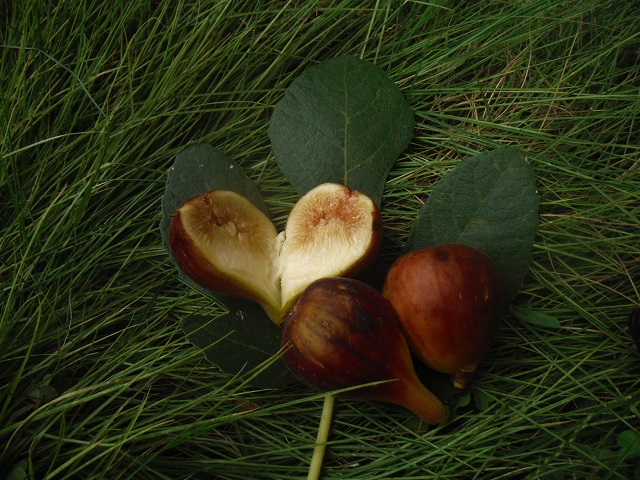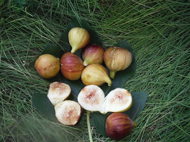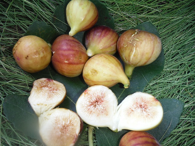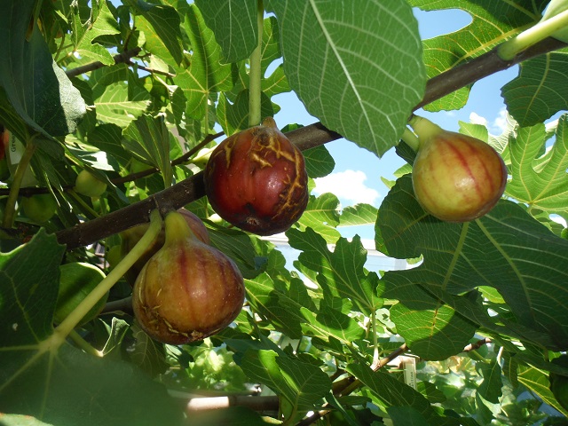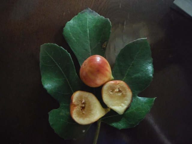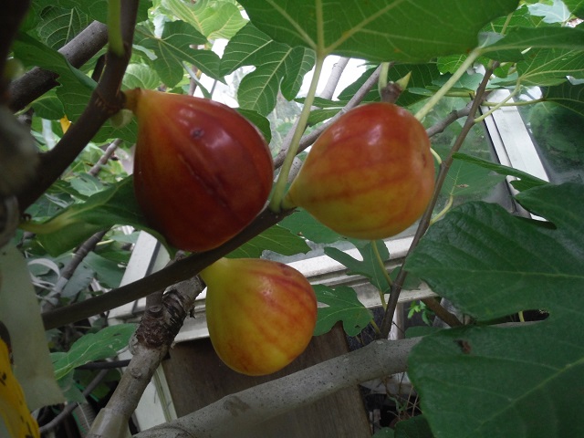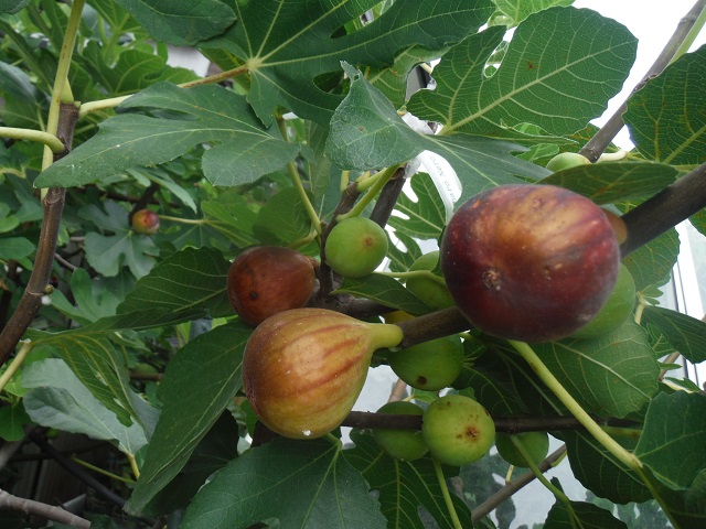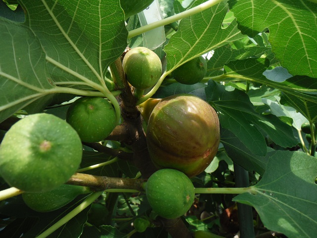庭ドーフィン台多品種接ぎのリサの食べ頃の夏果の実着きの様子。 |