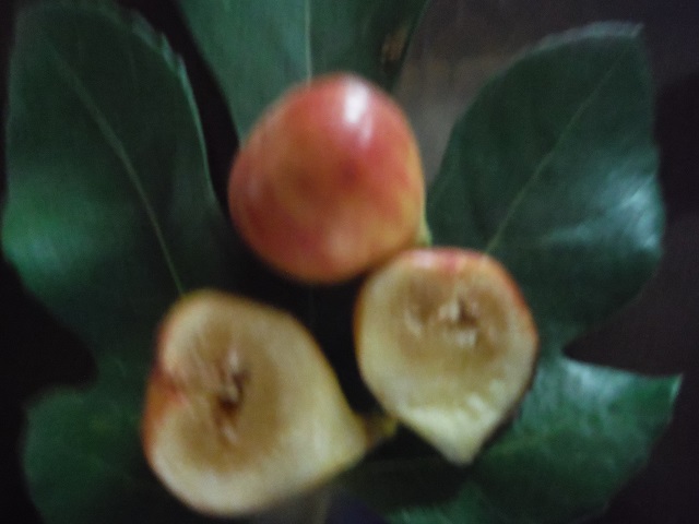 庭ドーフィン台多品種接ぎのリサの秋果の実着きの様子です。 |