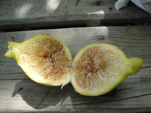 薄いピンクの果肉です。