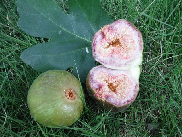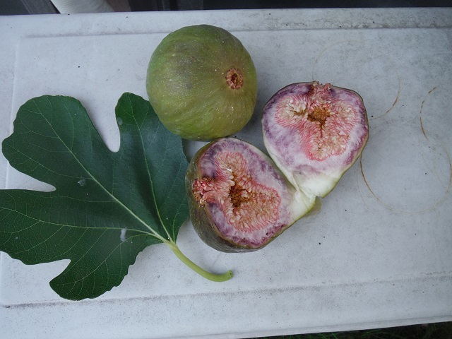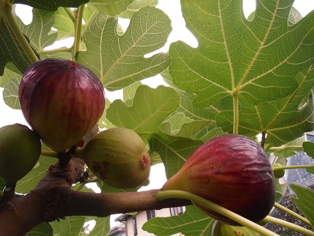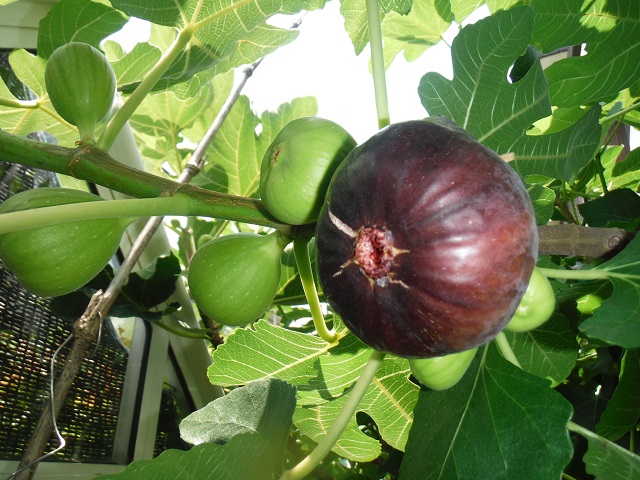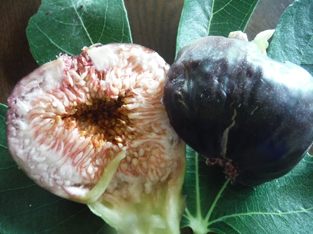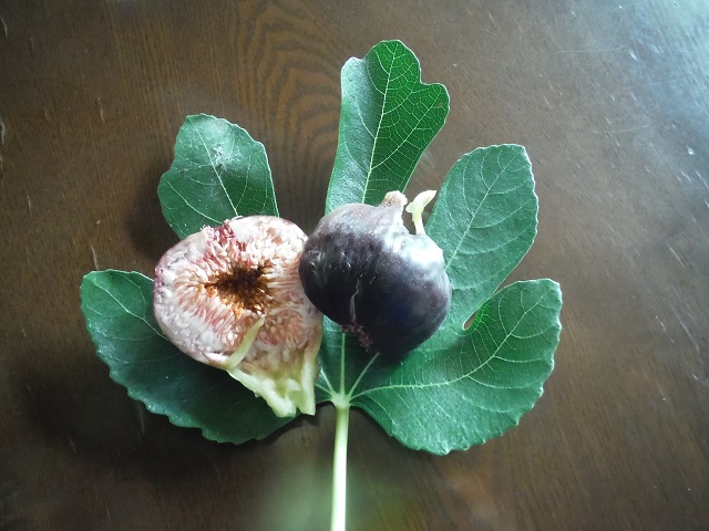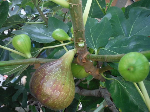 食べ頃になってきたピエドブーフの夏果。秋果も次々に出来ており、非常に多産系です。緑に紫がかった果皮になりました。