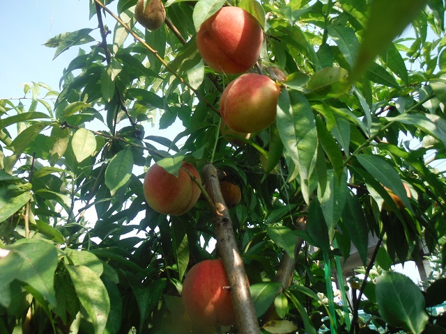 夢みずきの実着きの様子です。無袋栽培で育てたのですが、少し虫食いの果実も混ざりましたので、無袋栽培ぎりぎり可能な熟期品種の様です。