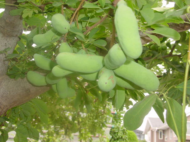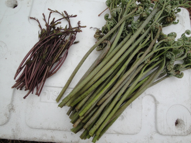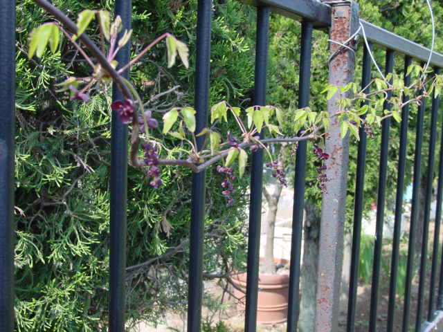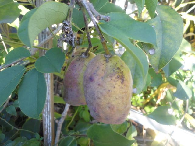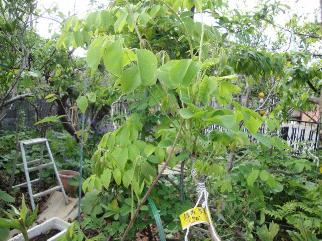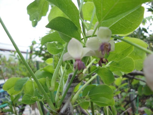 世話 若芽に油虫とイラガが発生しますが、低い位置で枝を伸ばしているので比較的簡単に駆除できます。これまでの生育の状況から見ると剪定に注意が必要のようです。近所で植えているアケビを見ると枝がかたまってジャングル状態になっているケースがありますので、適度に枝を間引きながら、ツルを上手く長く誘引し、葉や枝があまり混み合わない様にするのがコツの様に思います。ただし、暑さや乾燥にはあまり強くない様で真夏に落葉が多くなる事もあります。適度に葉を多くしたり、雨が少ない時期は根元に水を与える等の配慮も必要な様です。とりあえずは剪定と生育の関係の様子を見ながら、菜園を半周させるくらいのつもりで、葡萄棚や塀に沿ってのばしています。ツルを長くする為、先端を持ち上げて、先端部分は垂直に伸ばす様にしています。 利用 子供の頃よく山で食べたものですが、生食の他皮が炒め物などとして利用出来ます(三つ葉アケビ)。又若芽は一部の通の方が愛好する貴重な山菜ですが、大量に必要なので収穫するのはなかなか難しいです。我が家の菜園では、春先に一度一掴みほど収穫し、山の味を楽しむ事もあります。。 生育状況等: