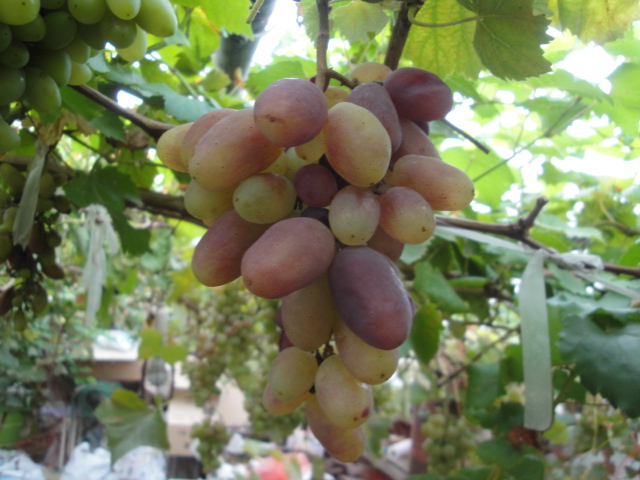 ソ連から持ち帰った不明品種の実生という事です。欧州系の為,病気には強くなく露地での栽培は向かない品種です。書籍ではもう少し着色したものが紹介されていますが、宮菜園ではポリカの屋根の下のため光線が弱い為と思われますが、着色は薄いです。