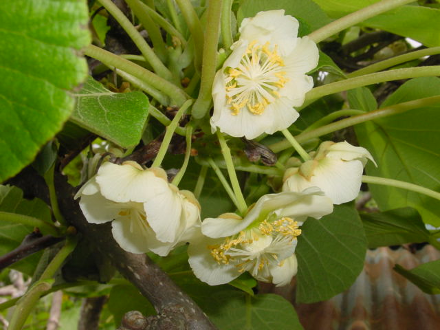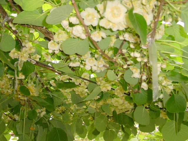 ゴールデンアップルについて リンゴの形をしたゴールド系のキウイです。緑色系の香緑やヘイワード等より花の咲く時期が少し早く、樹上での成熟も可能です。ただ、樹上で軟らかくはなるのですが、干からび気味に成ったり、芯の部分が固かったりするので、やはり一旦収穫して少し密封状態にして保存したり、したり、リンゴと一緒にポリ袋にいれて追塾したほうが安全です。 特徴 果肉: 白みがかった黄色 食味: 甘みは強くないが、好みによっては上品な甘みという感じ 保存期間: 冷蔵庫で2月位まで保存可能。少し乾燥気味にすると香緑よりも長く保存出来るようです。 実成り: 着花数がとても多い。新鞘の伸びが少ないので密生した感じになる