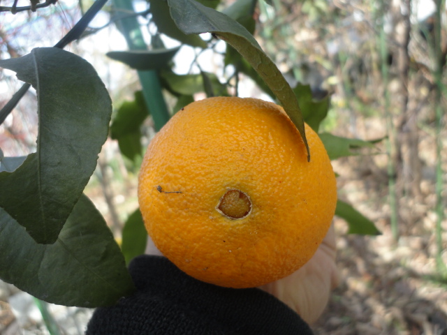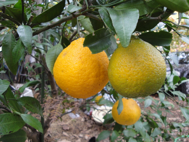 デコポンについて 現在は現在はスーパーなどでも沢山出回っていますが、少し前は高級柑橘としてかなり高い値段で売られていたようです。甘くて美味しい品種なのですが、埼玉では天候によるのでしょうか、なかなか酸味が抜けなかったり、熟す前に凍害にて腐ってしまったりします。安定して美味しい味を出すのは難しいようですが、美味しく出来た時はすばらしい味なので、沢山は成らせませんが、毎年期待しながら作っています。