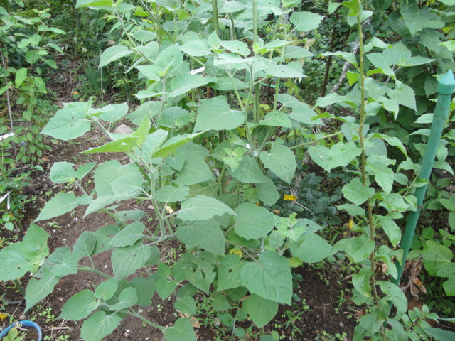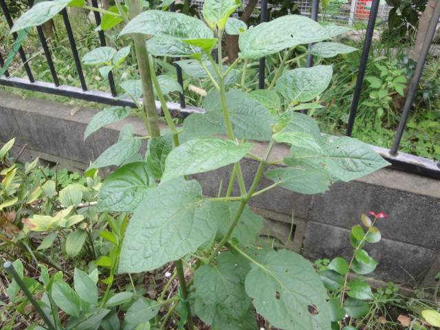ホウズキについて 赤い実のなる鑑賞用のホオズキを育てて見たいと思い捜していたところ、黄色の実がなる食用ホウズキの紹介を目にしてしまいました。 何と無く面白そうなので入手して育ててみていますが、昔から知っている赤いホウズキとは大分特性が異なるようです。 ある程度暖かい時期だけと思いますが、とにかく良く成長するのでビックリしてます。 種類 ゴールデンべりーという品種とオレンジチェリーと言う品種を育てていますが、葉の形は少し異なるようですが、概ね同じ特性の品種の様です。 生育状況等