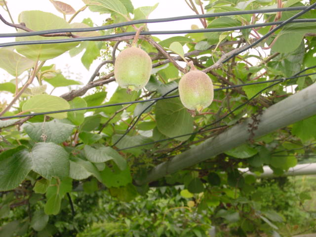 2006年5月21日 岩倉さんちのキュウイ キュウイのメスの花が終り、残り2本の花が咲き出していました。この2本は一本がメスでもう一本がオスだと思っていたのですが、なんと前からある木も後で植え今年から花が咲き始めた木も両方ともオスでした。 来年は開花の早いメス木に合うオス木、ヘイワードと香緑を接木する必要がありそうです。 2006年5月13日 岩倉さんちの菜園 今日は生憎雨でしたが、キュウイ等の生育状況を見に岩倉さんちの菜園に行ってきました。 気になっていたキュウイは、一本は花がびっしり咲き満開となっていました。木は雌で開花の時期から推測するとセンセイショナルアップルとかゴールデンアップルではないかと思われます。残念ながら他の2本は蕾のままですので、今年も受粉が行われず、実は成らないと思われます。この木にセンセイショナルアップル用のオス木を高接ぎしたのですが、まだ新芽が出ていませんでした。宮菜園の方の接木の芽は既に40cm程度は伸びているので、失敗かも知れません。 他の二本は、太い方がヘイワードのあたりで、細い方がそのオス木の様です。まだ花は咲いていませんが、蕾を割って見た感じでは雌木とオス木の様です。細い方の木は今年から花が咲き出したとの事ですので、今年このペアは実が成りそうです。 岩倉さんちの菜園に行き出してから間もない事もあり、毎回の様に新しい発見?があります。今日は、山葡萄(実成の良い市販の品種の様)、青い先が尖っている葡萄(山梨で買ったとの事)、小粒のグミ、2本目のミニ柿、初夏に小型の実のなる低位の潅木(ジューンベリーかな?)、サルナシ(キュウイの祖先)、ネクタリン?(モモと言ってたが少し大きくなった実をみるとネクタリンの感じ。でもまだ判らない。)、それに何本かある梅の木の中には宮菜園にない種類もありそう(花の形、実成から見て)です。 来年の冬は何種類か追加入手出来そうです。逆に接木したため不用になっているセンセイショナルアップル用雌木等、何種類か引き取ってもらえそうです。 2006年4月22日 岩倉さんちのスモモ 岩倉さんちのスモモの花が終わりましたので実を確認してきました。10本のスモモの木がありますが、どうやら種類としては4種類の様です。尚、10本の内1本は、スモモが枯れ台木が成長したもののようなので、この一本は相談のうえ根元から切ってしまいましたので、現在は正確には9本となっています。 2006年4月9日 岩倉さんちの梨 岩倉さんちには和梨NO1,NO2,及び洋梨1種ありますが、今日花を確認したら、和梨NO2と洋梨が満開を過ぎたところでありオシベの花粉はほとんど残っていませんでした。一方和梨NO1の花は全体で開花しているのが2,3個しかなく他は全部蕾の状態でした。開花状況からすると和梨NO2と洋梨はお互いに受粉出来るので実のなる確率が高いですが、和梨NO1は受粉樹が無い状態となり実は成らない可能性が大です。 ただ、一寸気になったのは、洋梨と言っていた木の花が和梨NO2と花の咲き方があまりに似ている事です。以前洋梨のラフランスを育てた時は、和梨の花と異なり、もう少し花の付き方が疎らだったような感じがします。洋梨と言ってたのが実は和梨NO2と同じ種類だったと言うような可能性もありますので、今後注意深く見ておく必要がありそうです。 2006年3月26日 岩倉さんちの菜園 スモモ 今日は岩倉さんちの菜園/果樹園に行ってきました。穂木を頂いたスモモ10本の花を確認しましたが、種類としては4種類位の様です。そのうち1種はソルダムのような感じの花でした。ソルダムにも熟期等により何種かありますので、宮菜園のソルダムと異なる可能性があります。その他、赤い葉でピンク色の花が咲く種類(これは床屋さんで頂いたハリウッドもどきと同じかどうかまだ不明です)、花の付き方がソルダムよりまばらな2種があります。そのうちの1種は緑色の先の尖った実がなるようで、これは宮菜園に無い種類のようです。実の大きくなる頃を楽しみとしています。 梨 梨はまだ花が開いていませんでしたが、蕾が沢山付き受粉が上手く行けば実成が確認出来そうです。和梨は大きな実がなる種類との事でしたが、洋梨共々種類は判らないままです。 リンゴ リンゴは2種ありこれも花芽が付いています。種類が判らないので取りあえず受粉用として宮菜園の紅玉とボレロを高接ぎしましたが、紅玉の方は小さな緑色の芽が伸び出していました。今回岩倉さんちのリンゴ2本(同じ種類らしい)の穂木は頂きませんでしたが、実が確認出来宮菜園に無いものでしたら来年穂木を頂こうと思っています。 フェイジョア 挿木で育てているフェイジョアの木が5本ほどありましたが、そのうち整理し本数を減らすとのことでしたので1番小さな一本を頂く事とし、今回木の周りの太い根を切る根回しを行って来ました。そのうち頂いて来て宮菜園のレパートリーに加えるつもりです。同じ木から挿木で育てたとの事で、実も成るとの事でしたので、一本でも実
