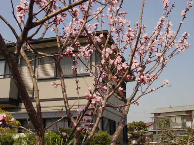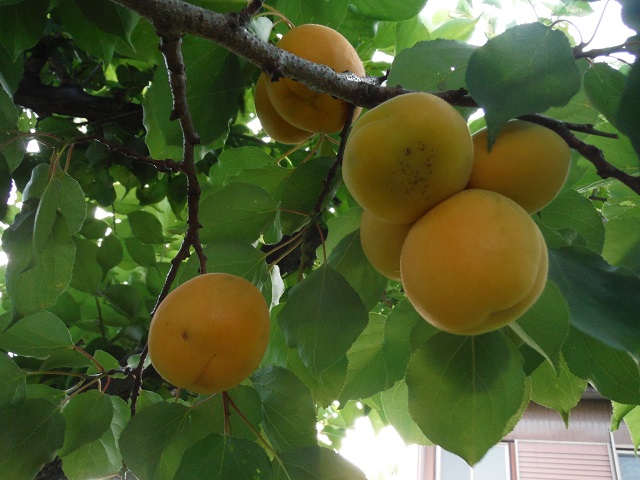 アンズについて 果物の本で紹介されていたアンズの様子をみて、なんとなく郷愁をそそられて育てて見たくなったのがアンズを育て始めたきっかけです。多分信州の方で栽培されている木の全体像だったと思いますので、実よりもその風景等全体の魅力にひかれたのだと思っています。最初ホームセンターで購入したものを育てていたのですが、酸味も甘みもあまり多くなく、木も一寸油断すると長い徒長枝が伸びまくりになり、なかなか思ったとおりの格好に育ってくれないので、放任気味で育てていました。 現在も相変わらず食用としてのアンズは重要視していませんが、枝を整えると花がとても綺麗なので、梅の木の彩りを高める品種として重要な位置を占めるようになりつつあります。 育成の様子