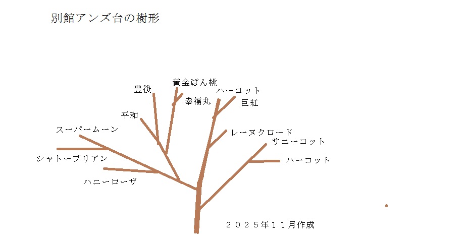 別館梅/アンズの樹形 ![]() ![]() 3番館の梅/アンズ/桃の樹形です。