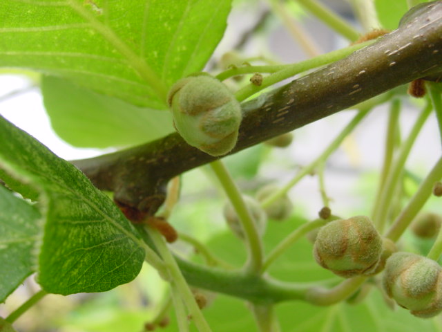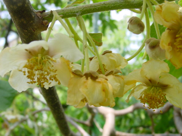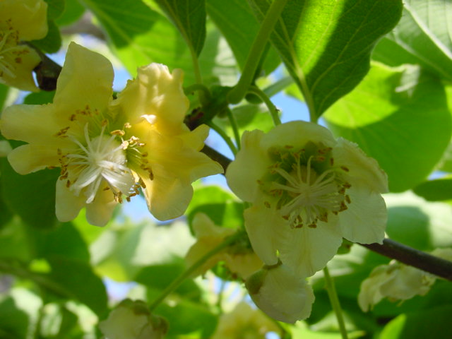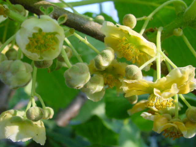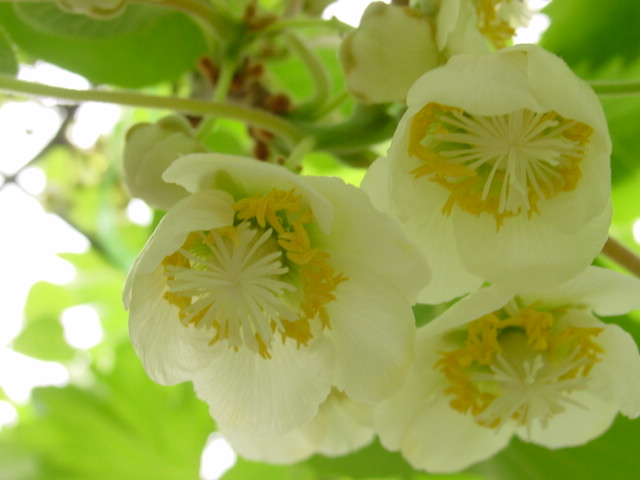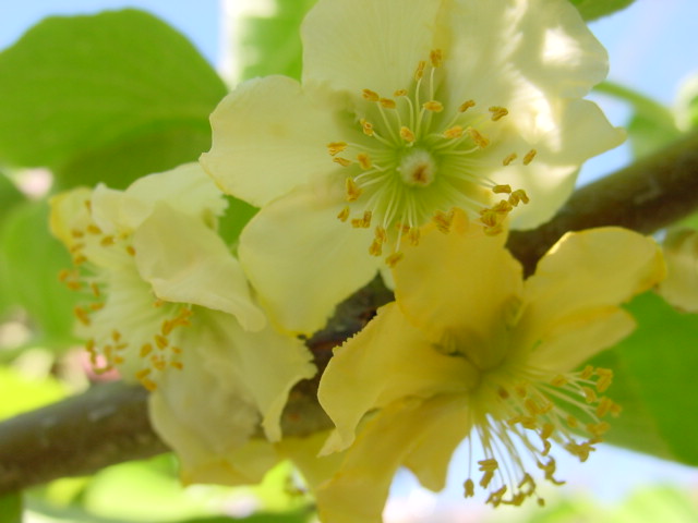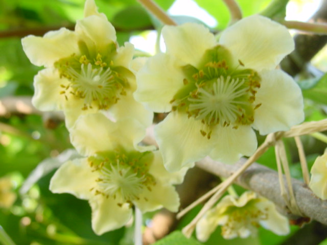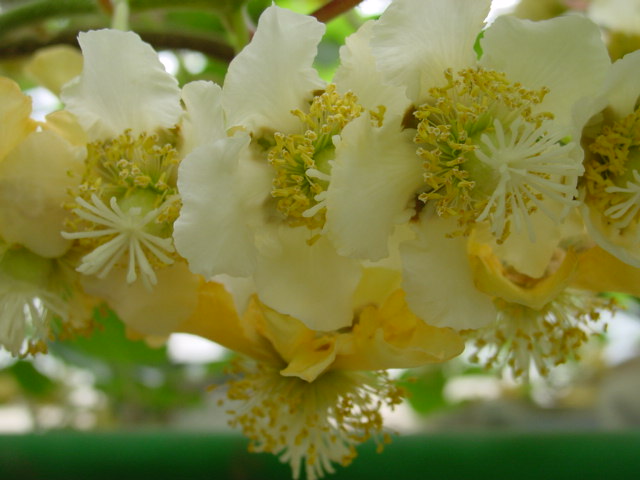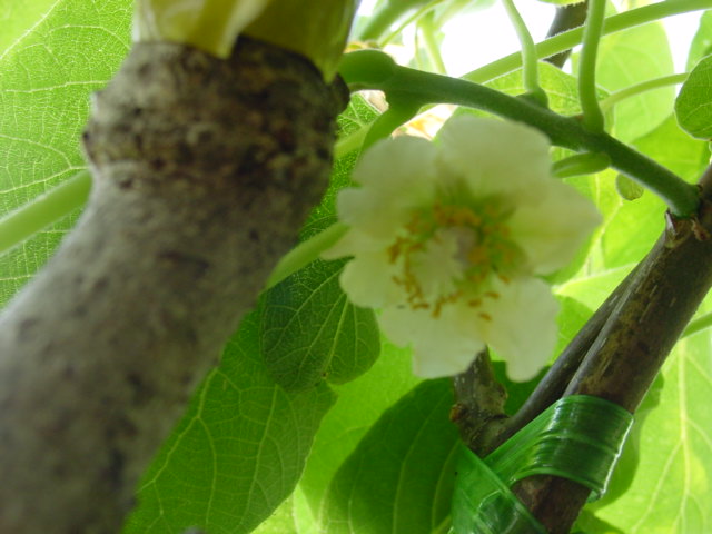 ゼスプリゴールド実生の雄花です。G2、G3と開花時期は大差無いはずですが、メイン台木の先端の方に接いであるためか、少し遅めの開花となっています。 |