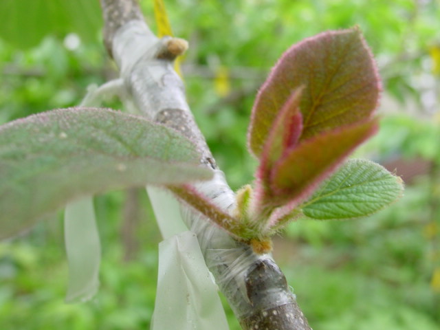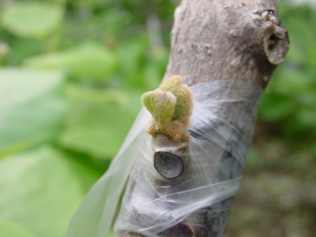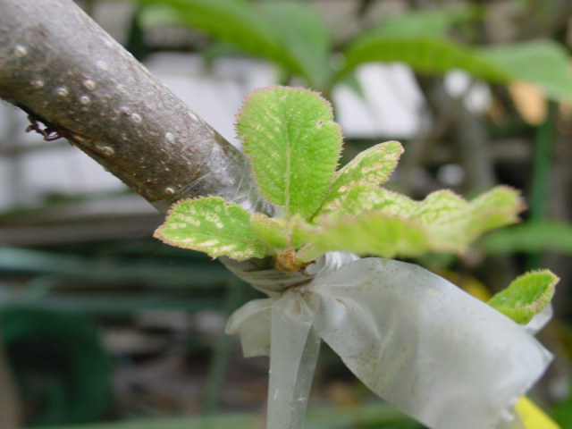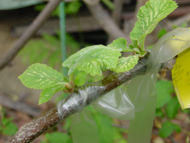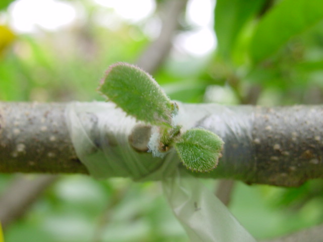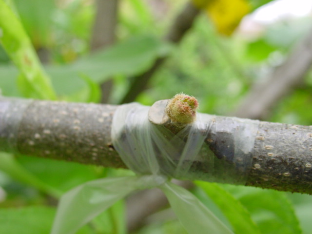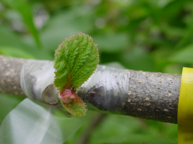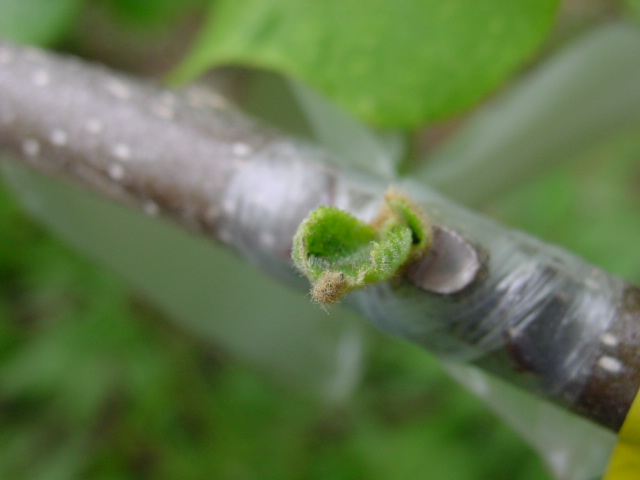 昨年の新鞘に接いだものです。これはなんか緑系の様な新鞘の色の様に見えますが・・・、ま、そのうちはっきりするでしょう。 |