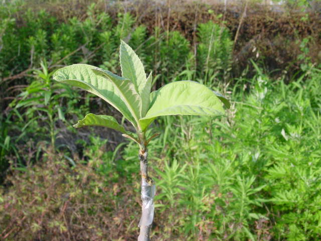 まだ接穂が成長していないので樹形と言えるものではないですが、昨年植えた実生苗に田中、長崎早生、長崎クイーン、田中を接いで育てています。 |