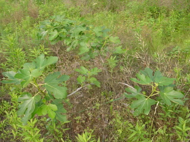 柿の実生苗です。実生苗だけでは主力木として不安がありますので、貴秋の接木苗も近くに植えてあります。 |