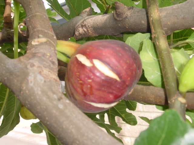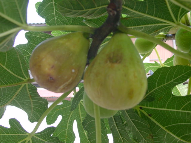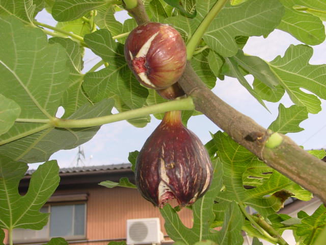 何時も鳥や虫に食われてしまう無花果の夏果ですが、今年は実の部分に網をかけて見ました。大きな夏果が5個ほど収穫出来ました。思っていたよりしっかりした実となっており、美味しかったです。 |
