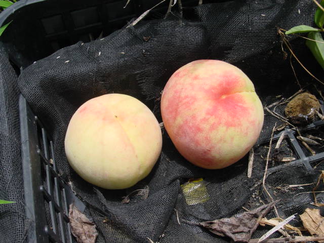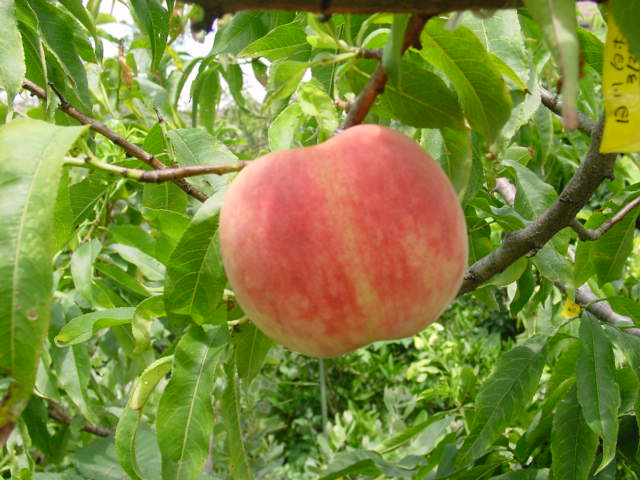 今年初成りの桃の白麗です。実が引き締まってとても甘くなっていましたが、少し過熟気味で触っただけで落ちてしまうレベルでした。 |