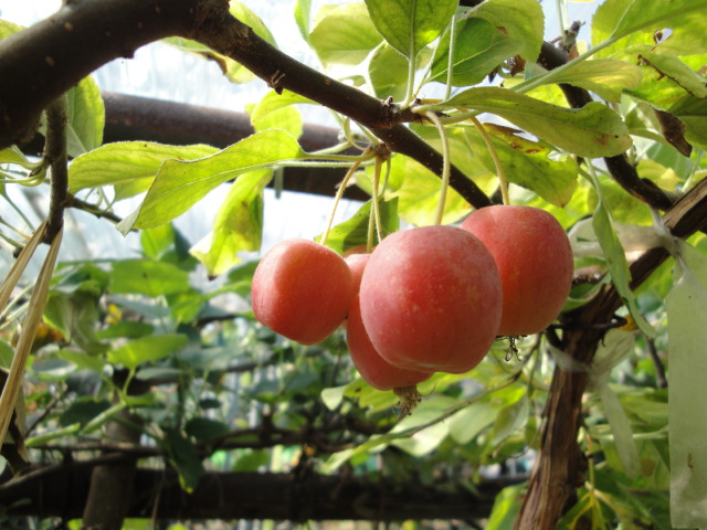 アルプス乙女の実です。紅玉同様ほぼポリカの屋根の下です。 |