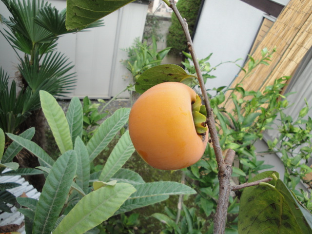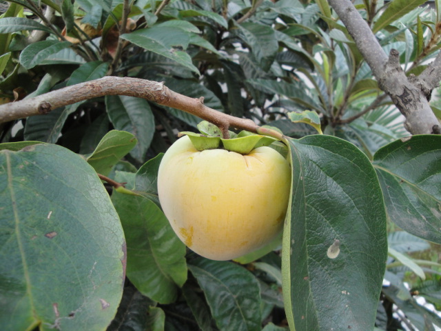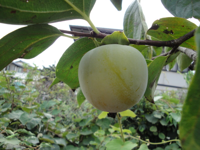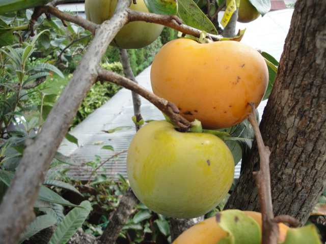 山田さんから頂いた種無し甘柿です。まだ少し熟期は先の様です。 |