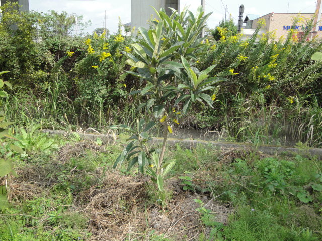 当初はこのセイダカアワダチソウが2mに伸び采園内を覆っていましたが、最近は少し大きくなると引き抜いて果樹の周りに肥料代わりに敷いていますので、花は殆ど見かけなくなりました。 |