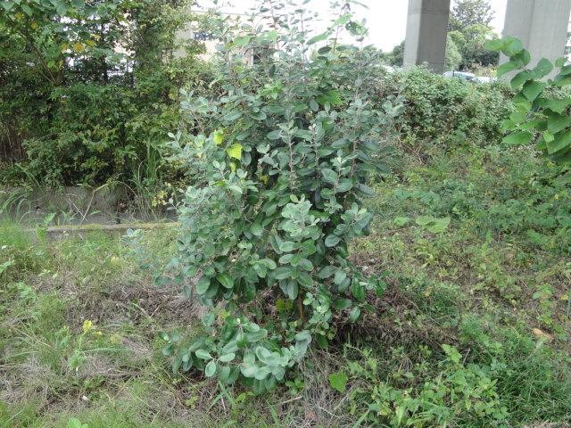 品種不明のフェイジョアです。苗を2本頂いたのですが、本館では育てるスペースがないのでこちらに1本移植しました。 |