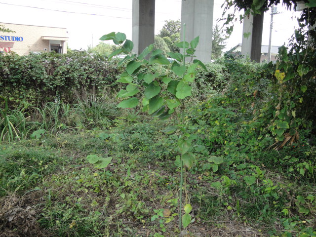 菜園内のセイダカアワダチソウは駆除しているのですが、隣のJRの敷地はこの通りびっしりです。当然、種が飛んできますので、菜園には毎年生えてくる事になります。JRさん草取り位してよ・・・。 |
