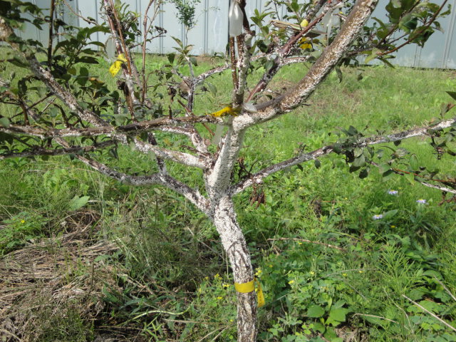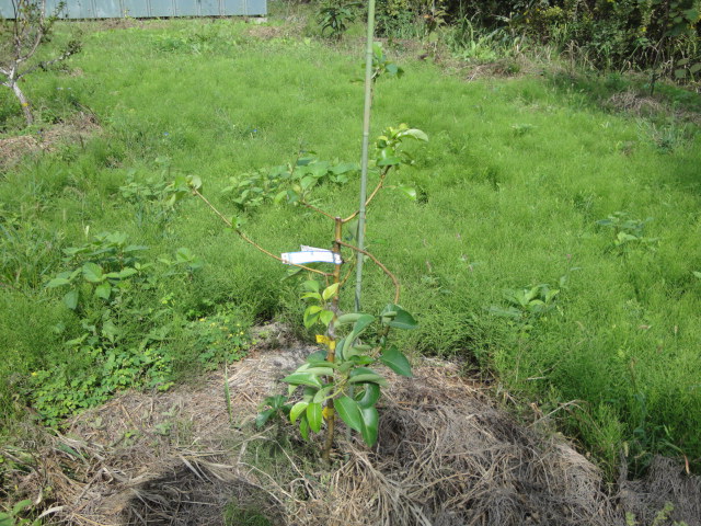丸葉台のリンゴの樹形です。このほかにM24台も一本植えており、各種の品種を接ぎ始めています。 |