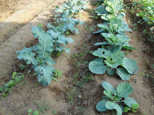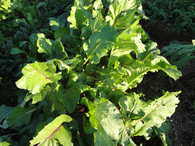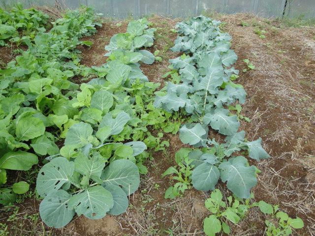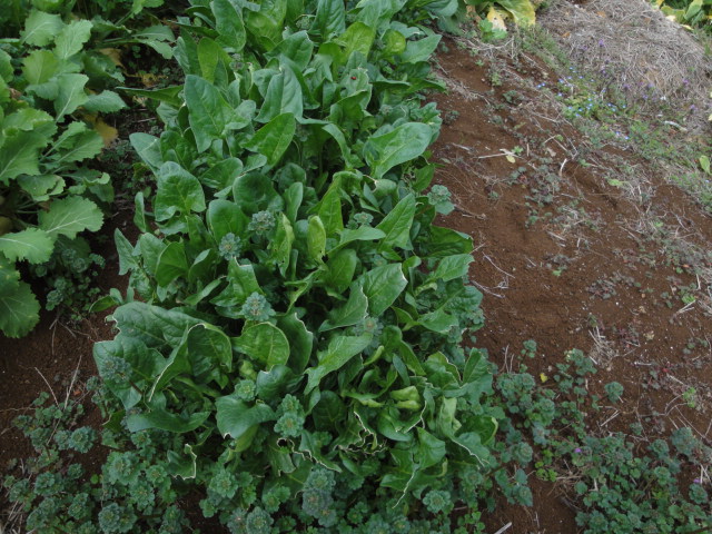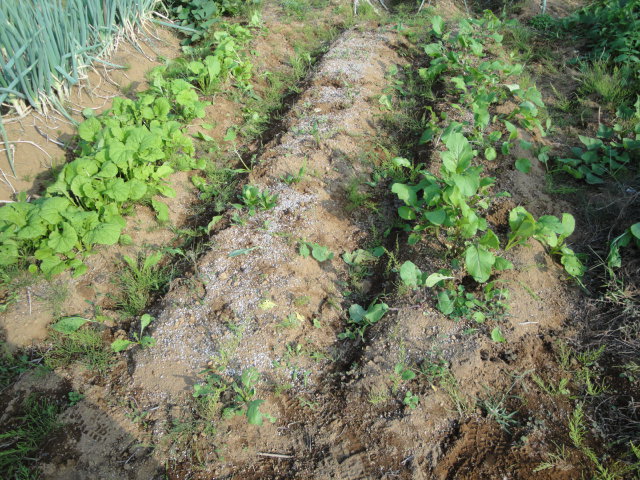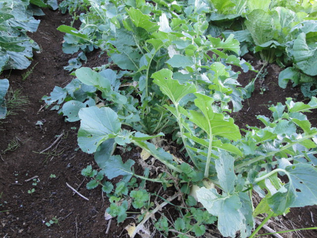 畑に植えた小松菜の」種がこぼれ、果物エリアの雑草の間に沢山生えて着ましたので、今年は畑の方には植えていません。 |