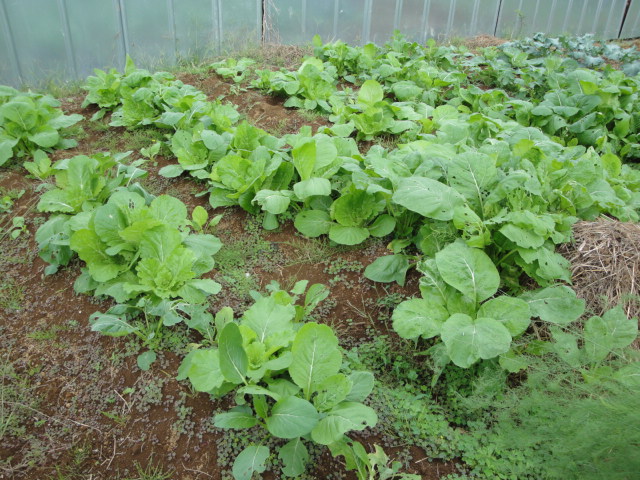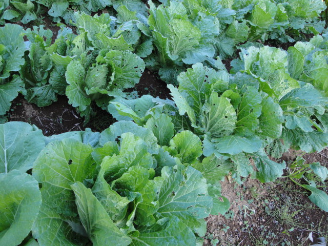 9月6日に種蒔し、11月15日に植えつけたものです。まだ少し苗が小さ過ぎた様で、苗の育成が課題ですが、とりあえず昨年よりは大きな苗が出来、玉の太りも昨年よりは良いと感じています。 |