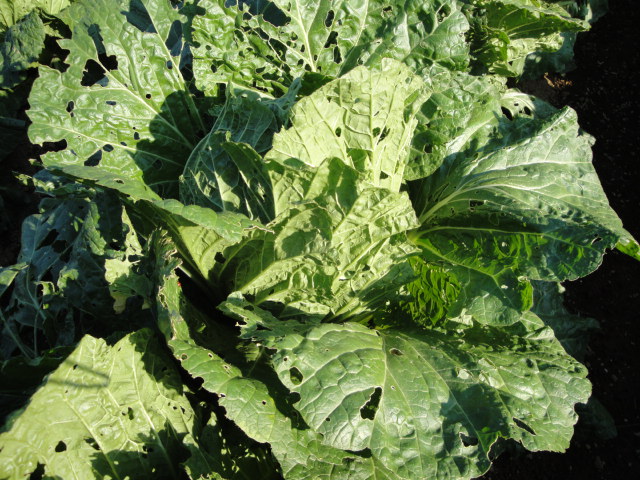 ところどころ青虫がついているので、見つけ次第捕殺しながら育てています。 |