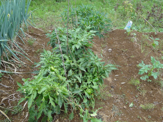 ピーマンはまだ収穫出来ていますが、そろそろ終了と思います。タカノツメは赤い実が目立ち始めました。 |