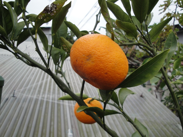 ようやく酸味が抜けてきましたが、思ったより遅い。売っている日南早生は青いうちから酸味が抜けているのに・・・。課題です。 |