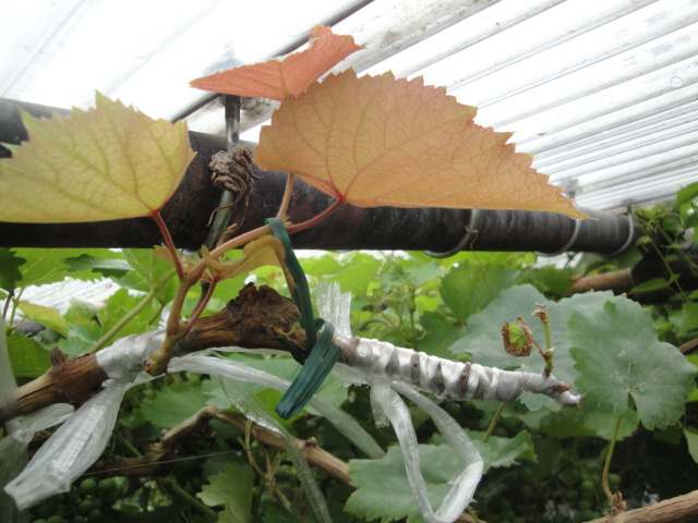 6月5日、若木に接いだベリーAです。こちらは何とか展葉を開始しました。 |