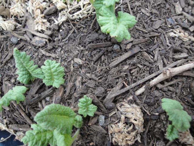 3種を植えつけた状態です。葉の色が少しずつ異なるので、葉と花の色の関係を見るため以下にそれぞれの葉の状態の拡大写真を載せてみました。 |