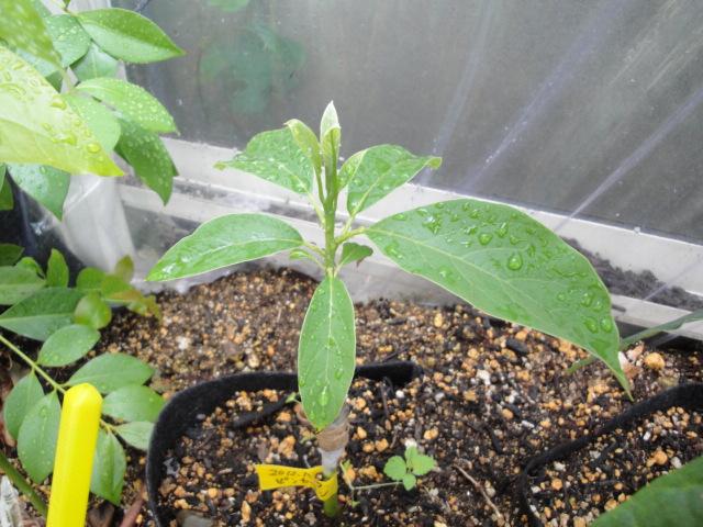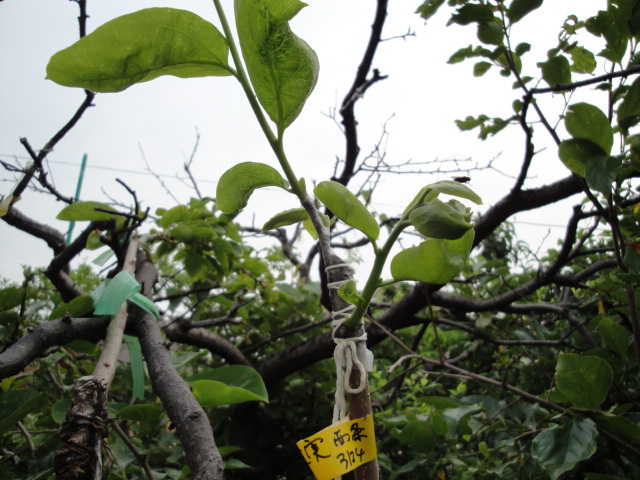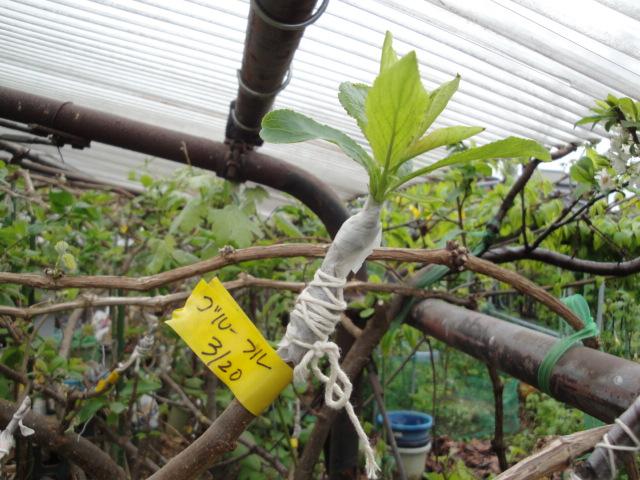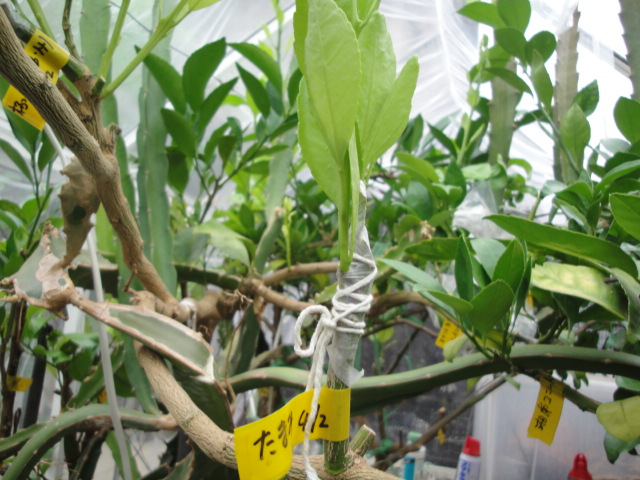 耐寒性に優れた特性の品種です。Hさんから穂木を頂きハスの実生苗に接木しました。 |