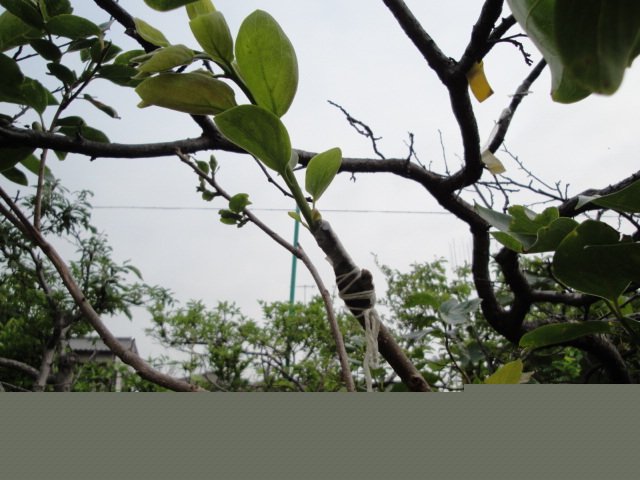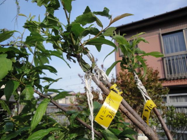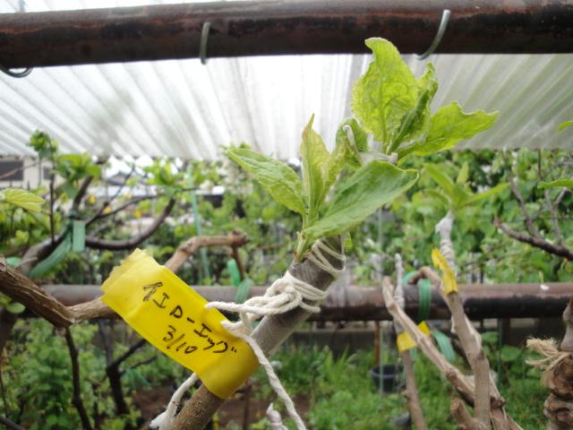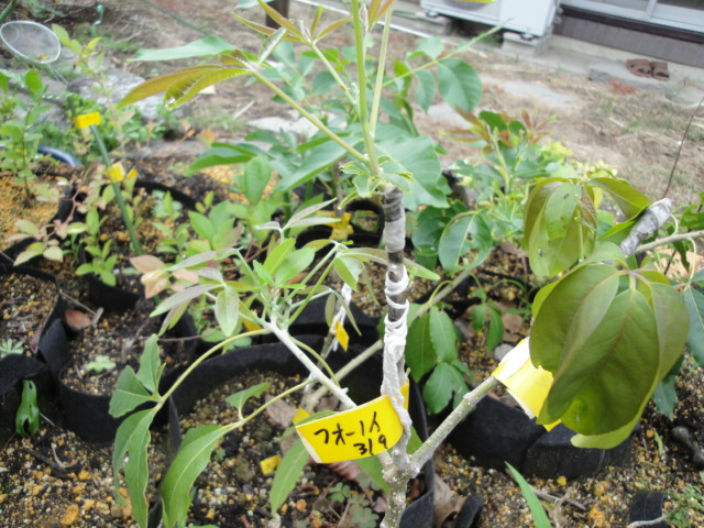 Hさんから穂木を頂きハスの実生苗に接木しました。 |