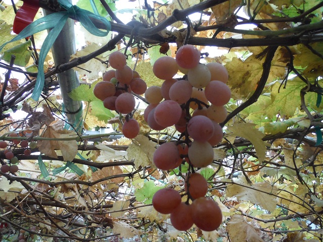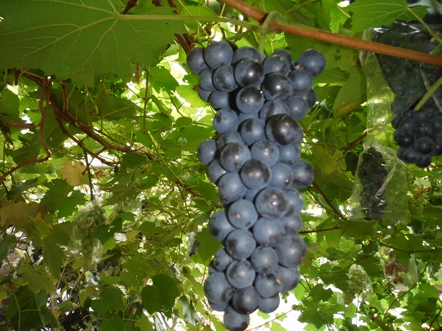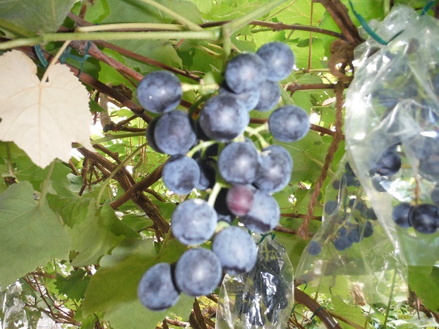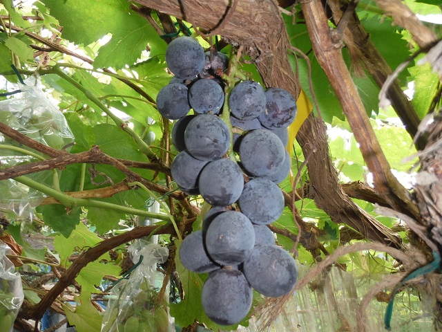 山葡萄の改良品種とのことで、見付きはとても良く不味いという訳ではないですが、種が多く食用としては少し落ちる様です。 |