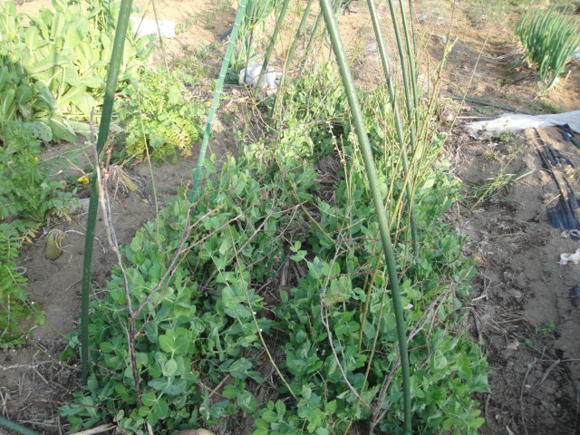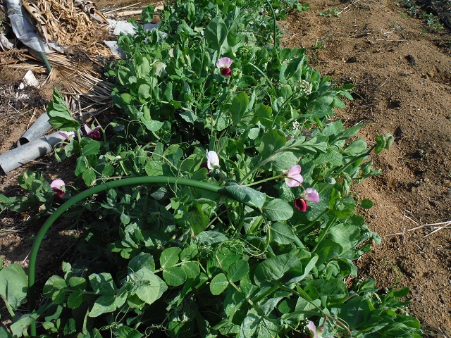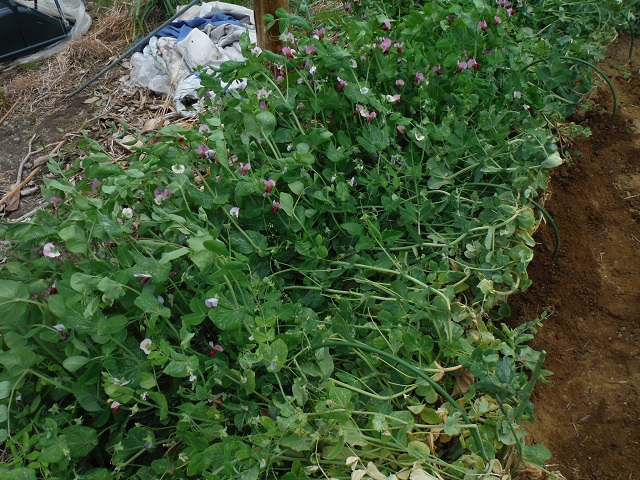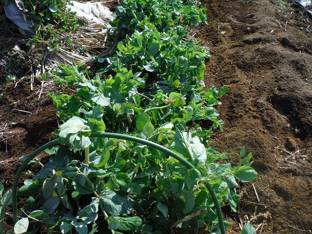 エンドウについて エンドウは暑さに弱く、初夏になると全く育ちません。その代わり冬の寒さにも耐えますので、秋に植えて初夏までの収穫になります。主に若い鞘を食べますが、取り残しの未熟な種もグリーンピースとして(正確にはグリーンピースの専用種とは少し異なるのですが)美味しく頂く事が出来ます。 植付時期 通常は秋11月頃に種蒔します。最近は春蒔き用エンドウの種も販売されていますが、早春早めに種を蒔かないと、成長が不完全な状態で暑い時期になってしまい、収穫量はあまり望めません。 日々の手入れ 寒さに強いと言っても、大きく成長しすぎた状態で越冬するとやはり凍害など寒さの被害を受けますので、あまり大きくならないよう早植えには注意が必要です。とはいうものの、12月や1月に暖かい日が続くと成長が旺盛に成りがちですので、天候次第と言う面もありますので、なかなか思ったようにはいきません。 そのほか、冬の強風により苗の根元が傷み枯れてしまう事や、連絡障害には特に注意が必要です。出来れば5年から10年位は同じ場所に植えないことが大切です。 生育と収穫の様子